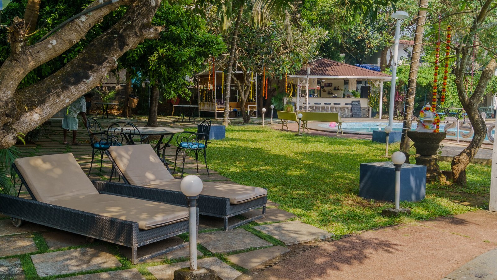 Mornings begin with soft light filtering through palms and birds moving through the gardens. Coffee is unhurried. Breakfast stretches longer than planned. As the day warms up, time drifts between the pool, shaded pathways, and quiet corners under old trees. Some guests read. Some nap. Some do nothing at all. Afternoons melt into easy conversations and light meals. Evenings arrive gently. The air cools. Lights soften. Dinner feels warm and unforced. There’s no schedule to follow here. No pressure to do more.